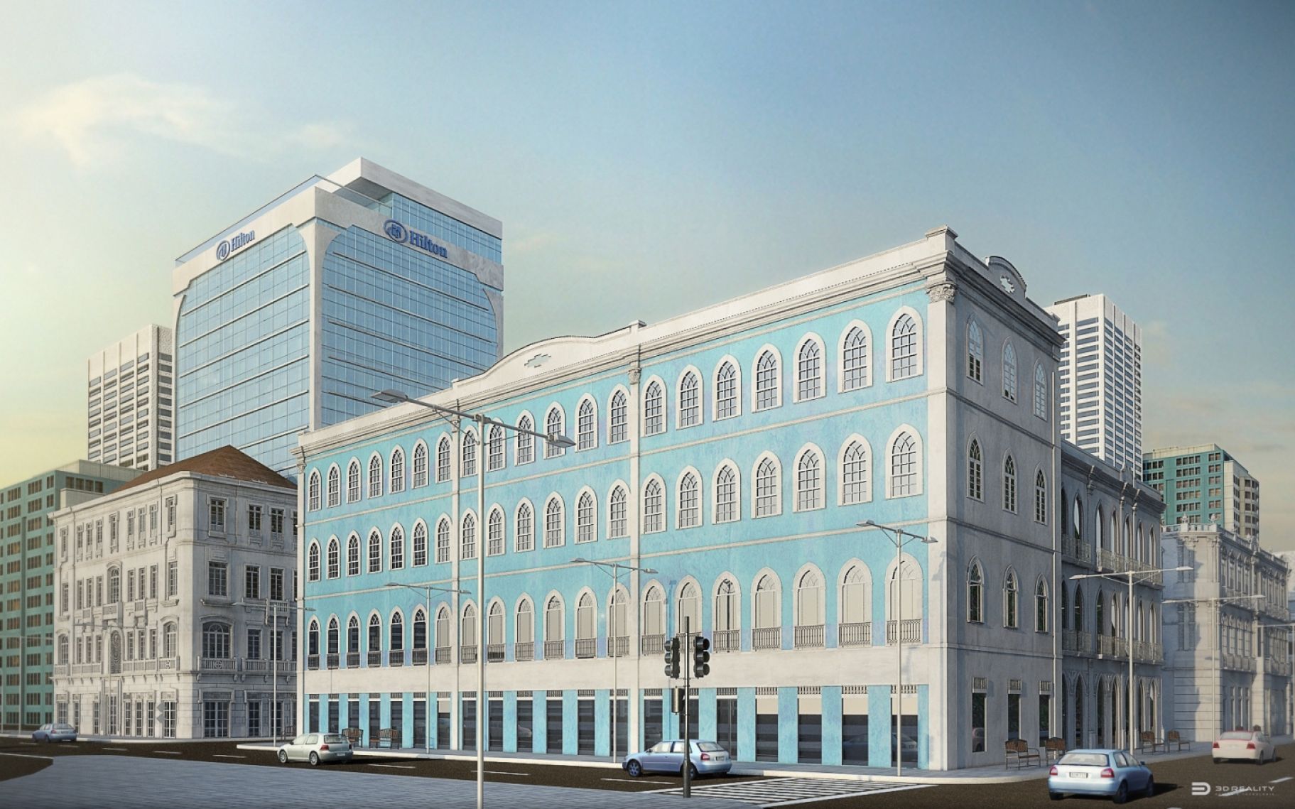 Hotel Business construído de 170 (cento e setenta) unidades hoteleiras, distribuídas num conjunto de edificações composto de uma torre de 13 pavimentos mais 3 casarões tombados no bairro do comércio, nas proximidades do mercado modelo.
